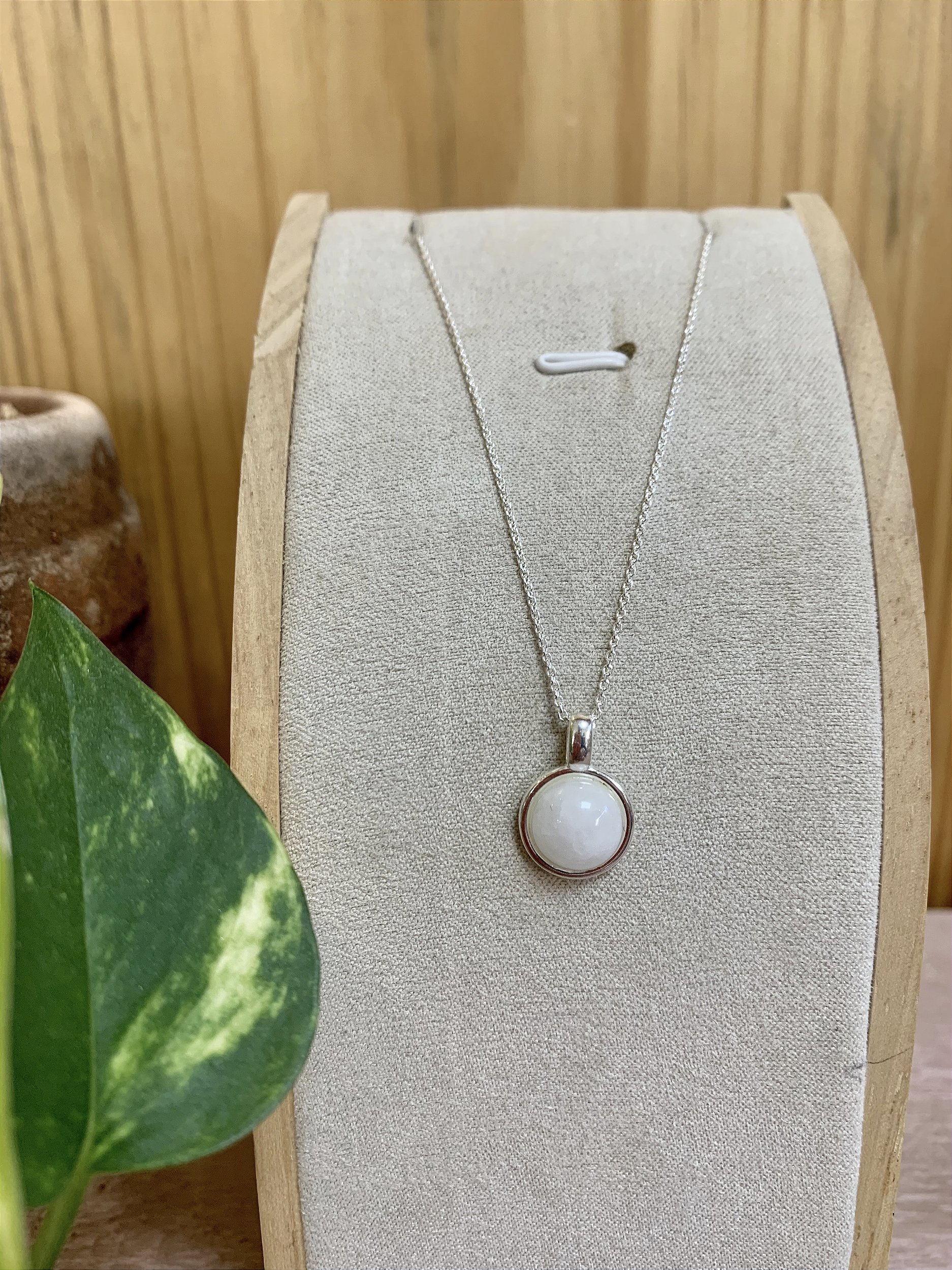 Colar em Prata 925 com pingente de pedra Quartzo Branco a 12mm.